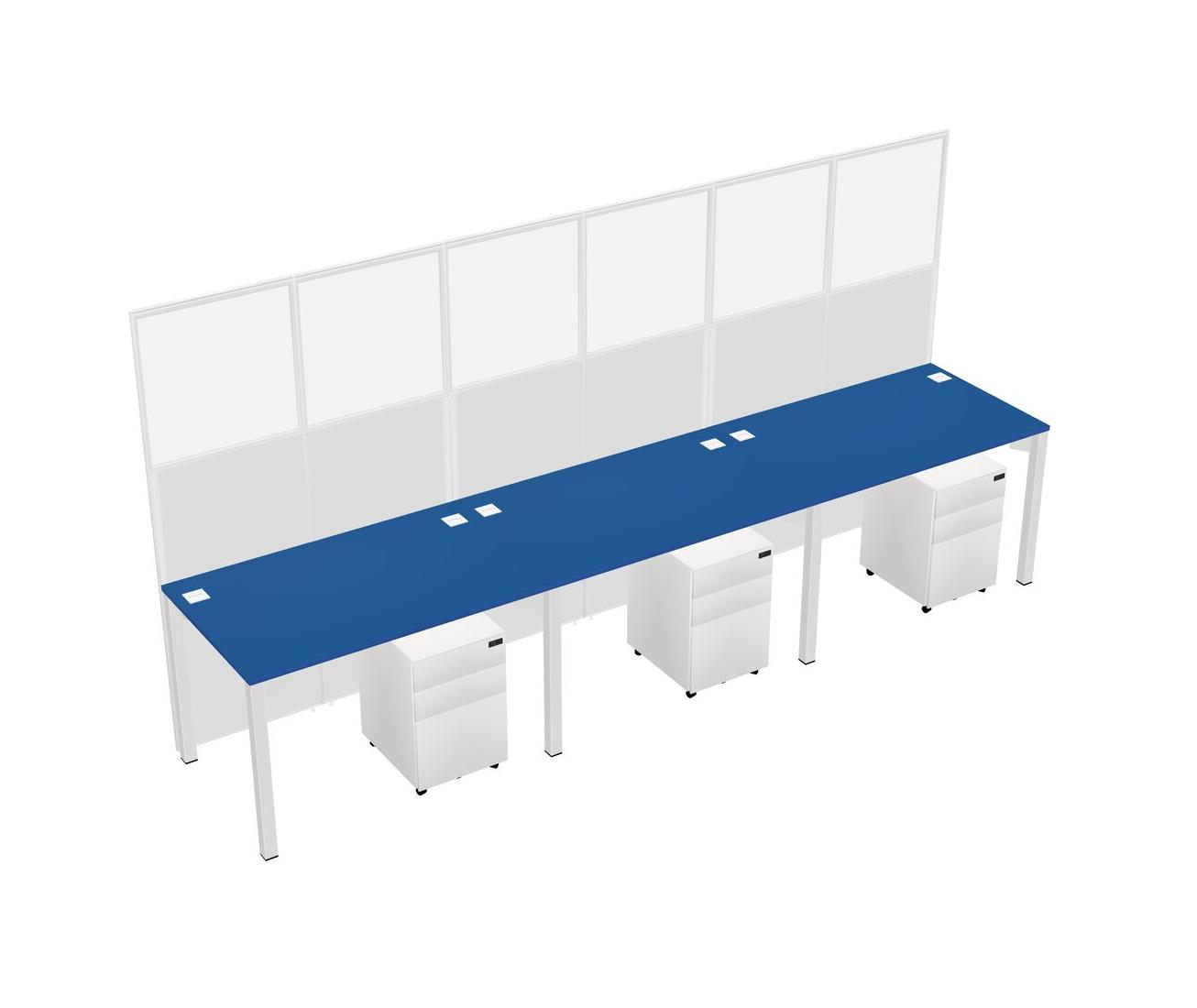 Prism Blue Shared Rectangular Office Cubicle Panel System With Mobile Drawers For 3 Persons