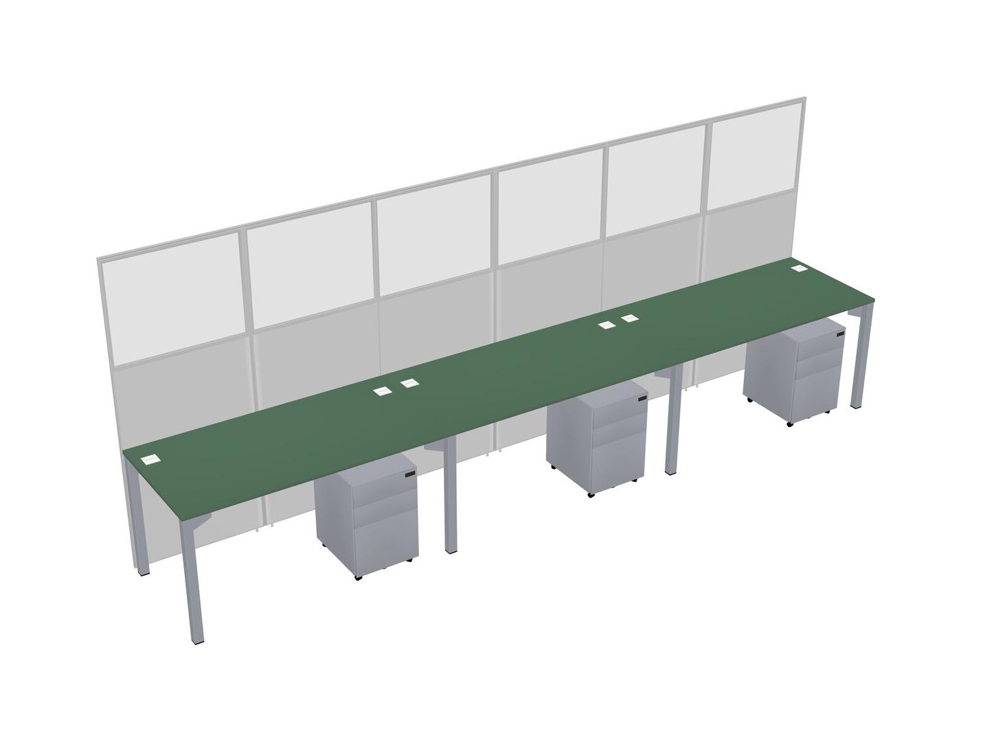 Green Shared Rectangular Office Cubicle Panel System With Mobile Drawers For 3 Persons