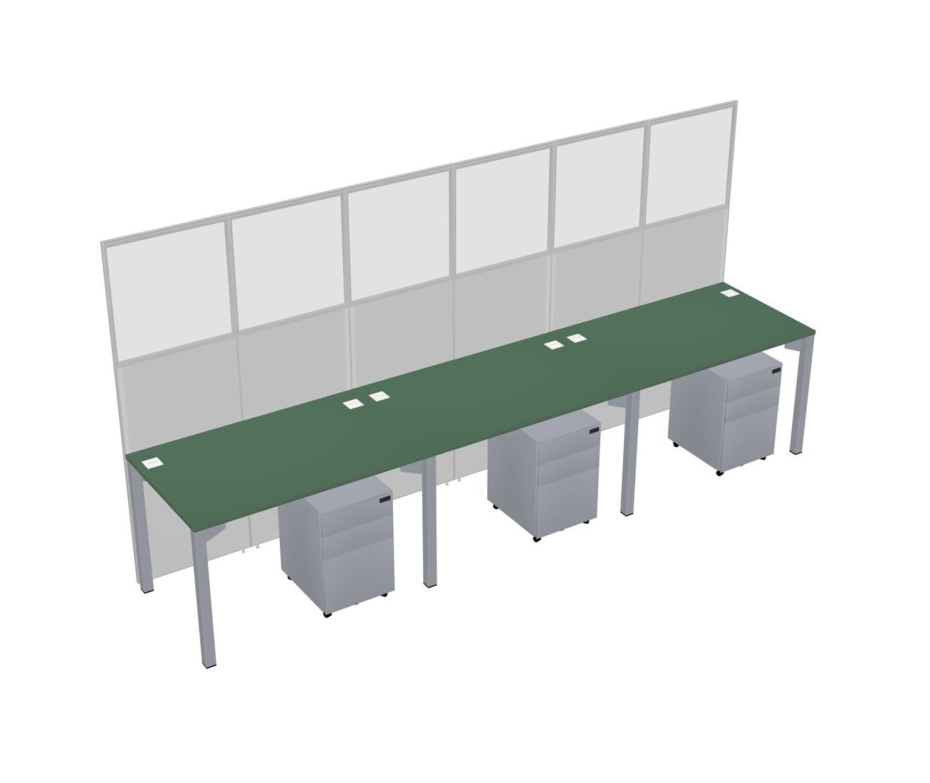 Green Shared Rectangular Office Cubicle Panel System With Mobile Drawers For 3 Persons