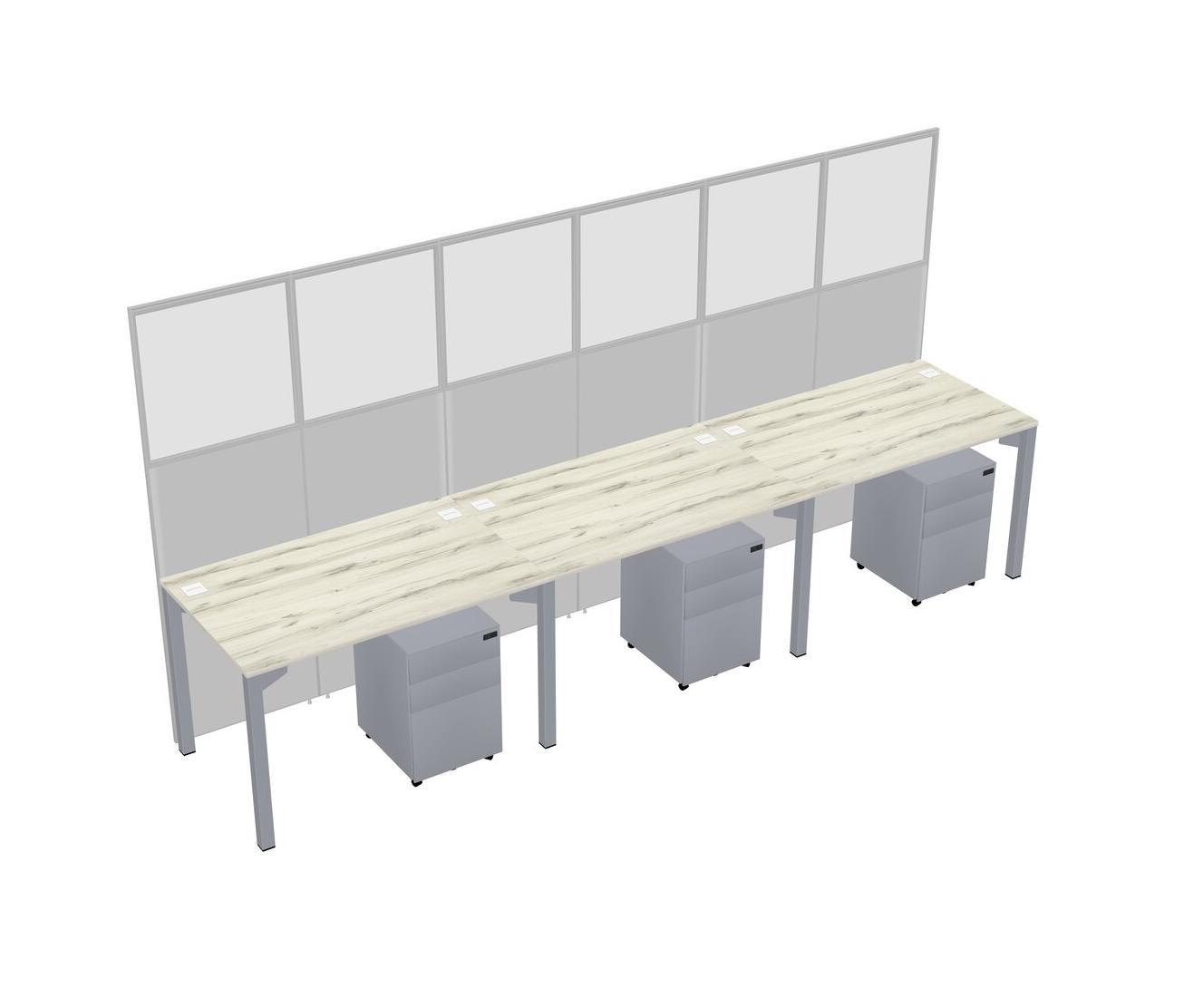 Heinne Holz Shared Rectangular Office Cubicle Panel System With Mobile Drawers For 3 Persons