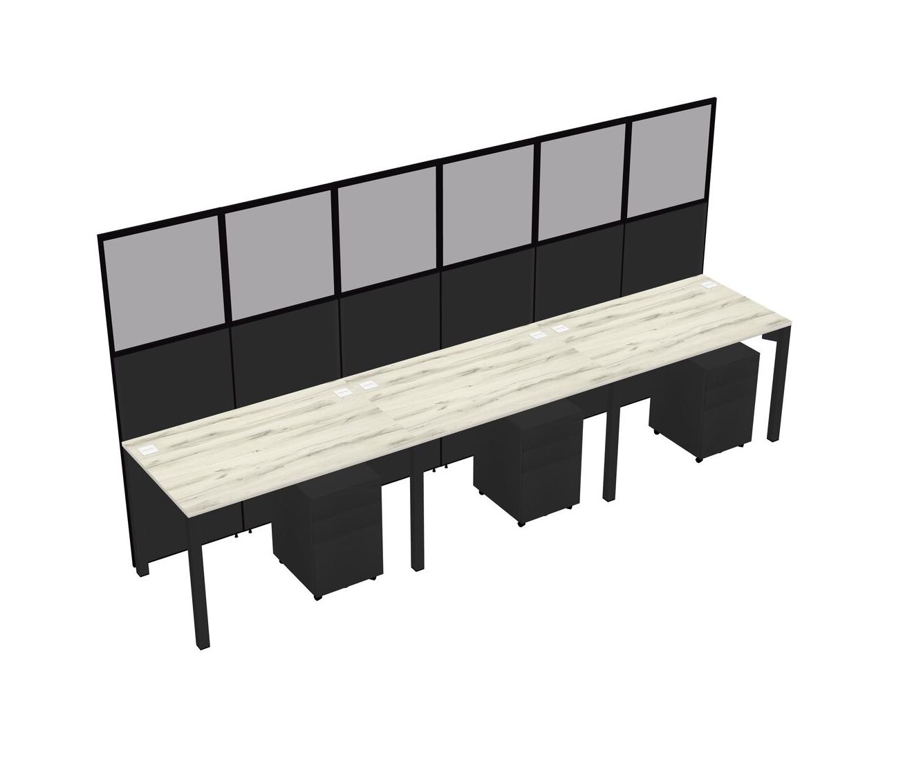 Heinne Holz Shared Rectangular Office Cubicle Panel System With Mobile Drawers For 3 Persons