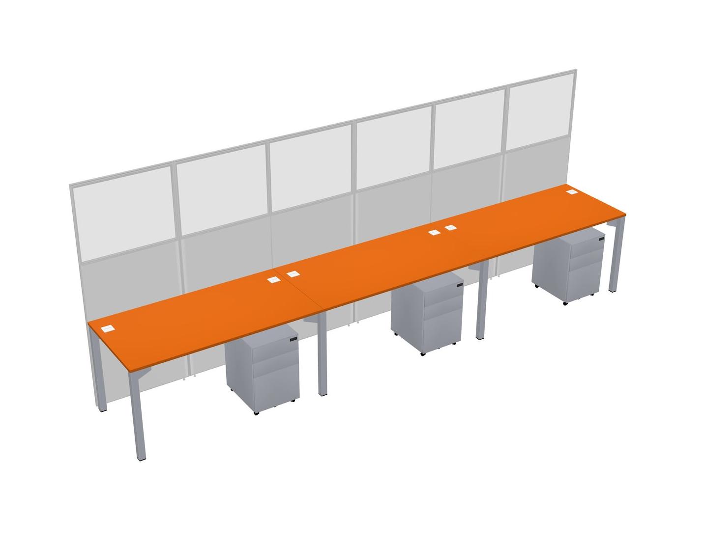 Orange Shared Rectangular Office Cubicle Panel System With Mobile Drawers For 3 Persons