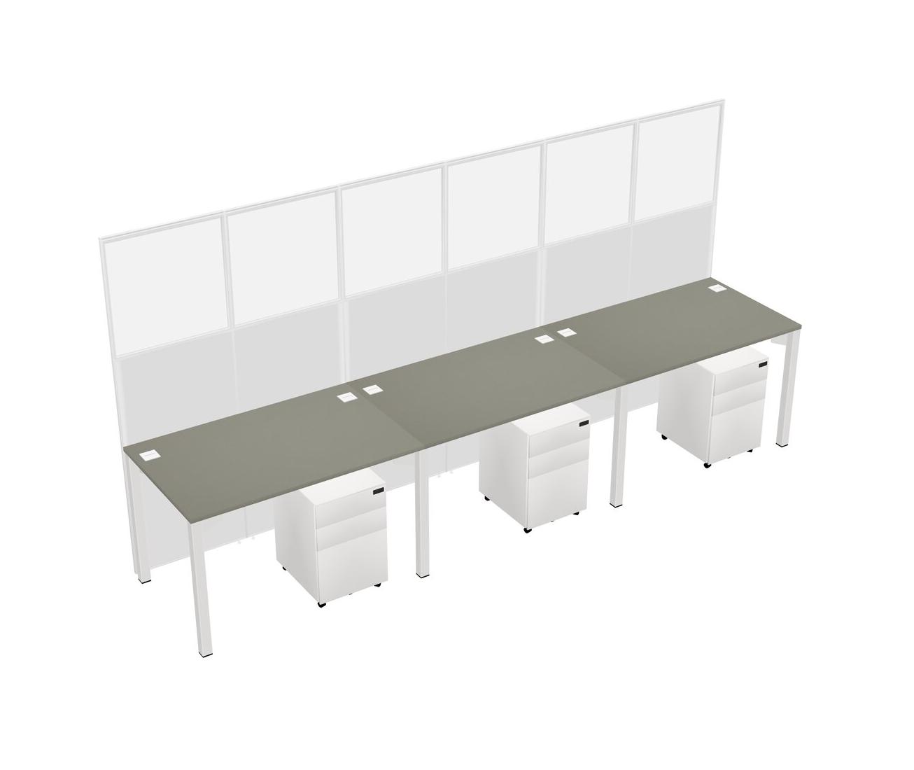 Grey Shadows Shared Rectangular Office Cubicle Panel System With Mobile Drawers For 3 Persons