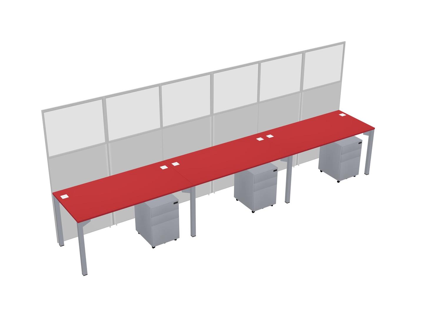 Prism Red Shared Rectangular Office Cubicle Panel System With Mobile Drawers For 3 Persons