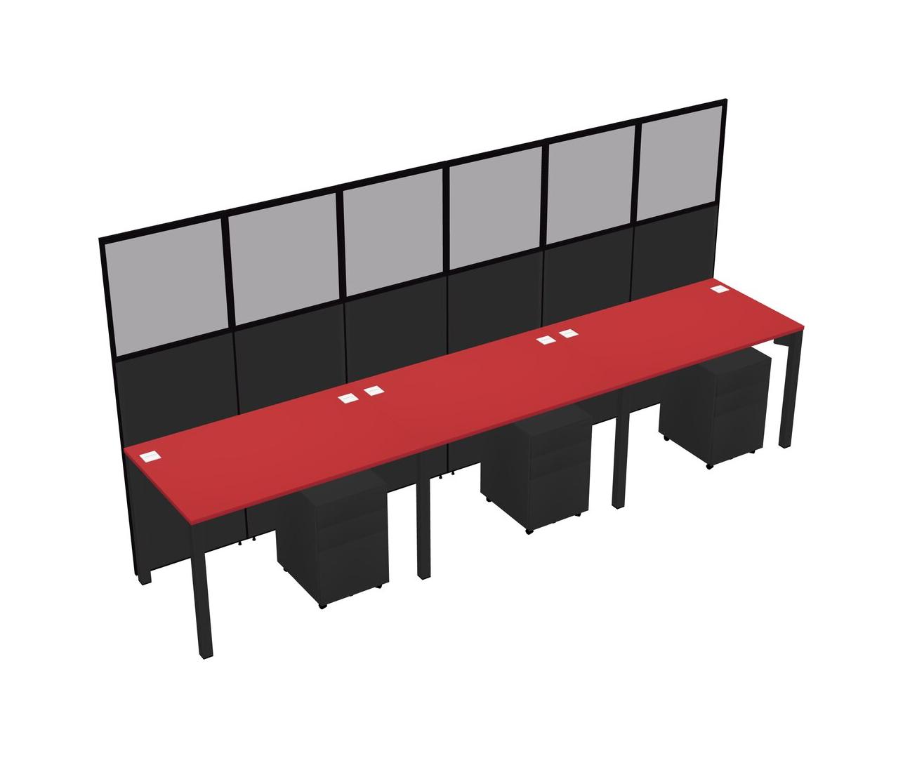 Prism Red Shared Rectangular Office Cubicle Panel System With Mobile Drawers For 3 Persons