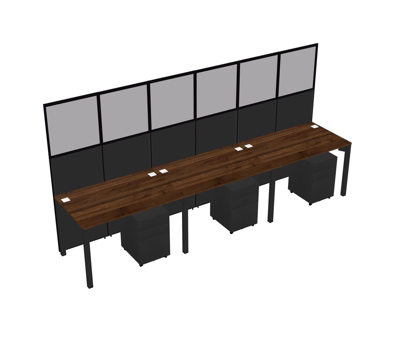 Columbia Walnut Shared Rectangular Office Cubicle Panel System With Mobile Drawers For 3 Persons
