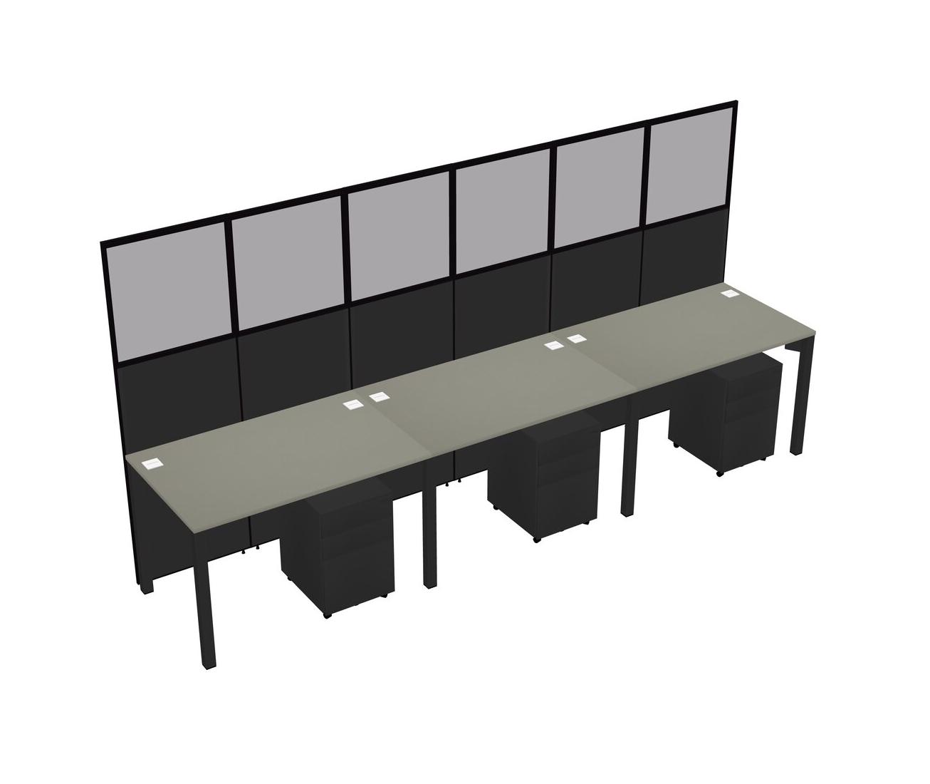 Grey Shadows Shared Rectangular Office Cubicle Panel System With Mobile Drawers For 3 Persons
