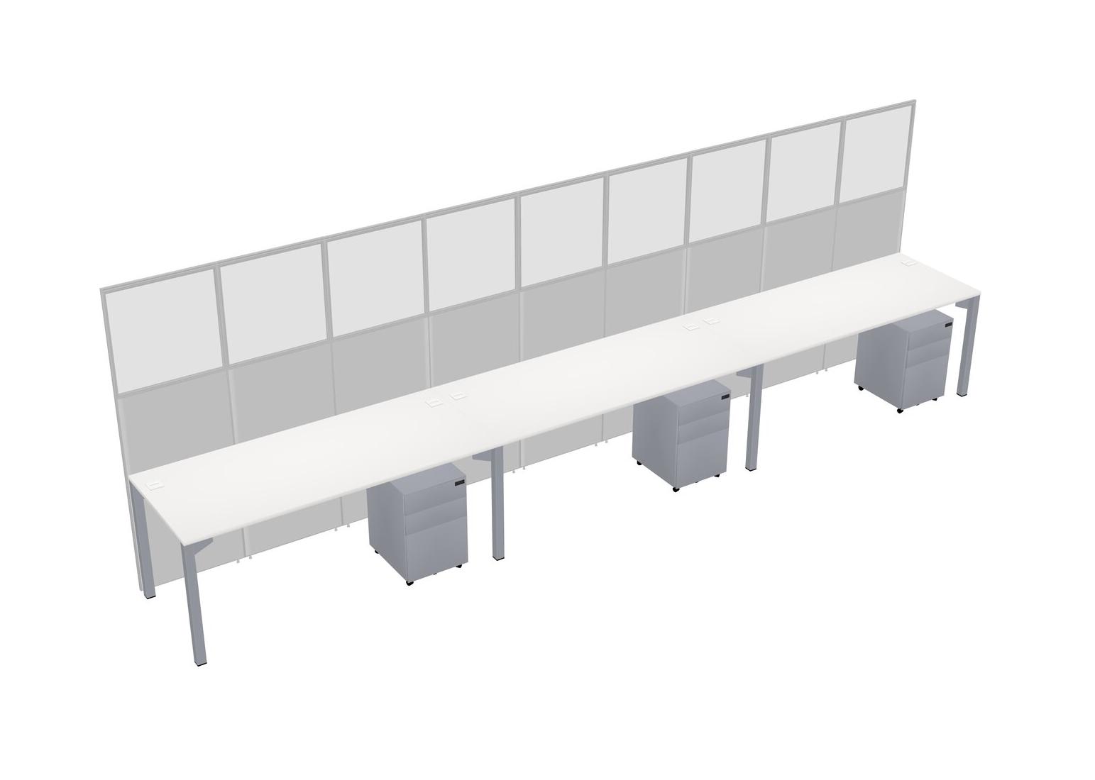 White Shared Rectangular Office Cubicle Panel System With Mobile Drawers For 3 Persons