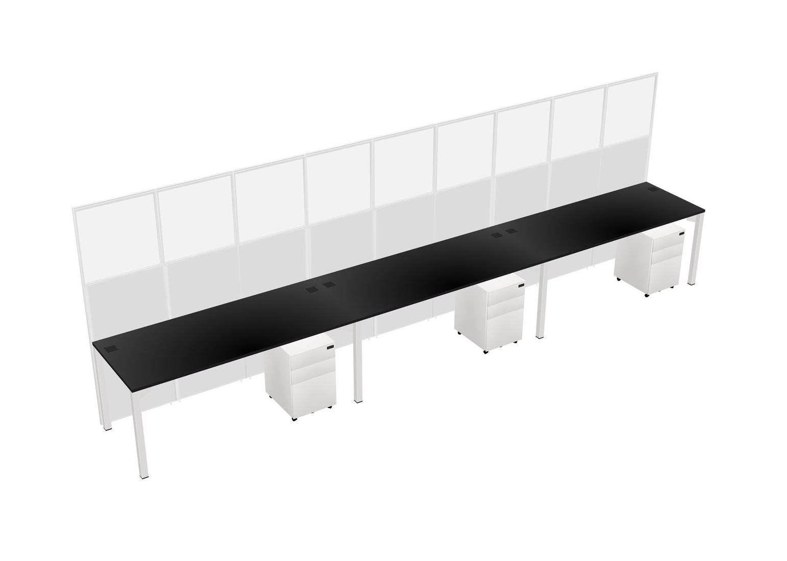 Black Shared Rectangular Office Cubicle Panel System With Mobile Drawers For 3 Persons