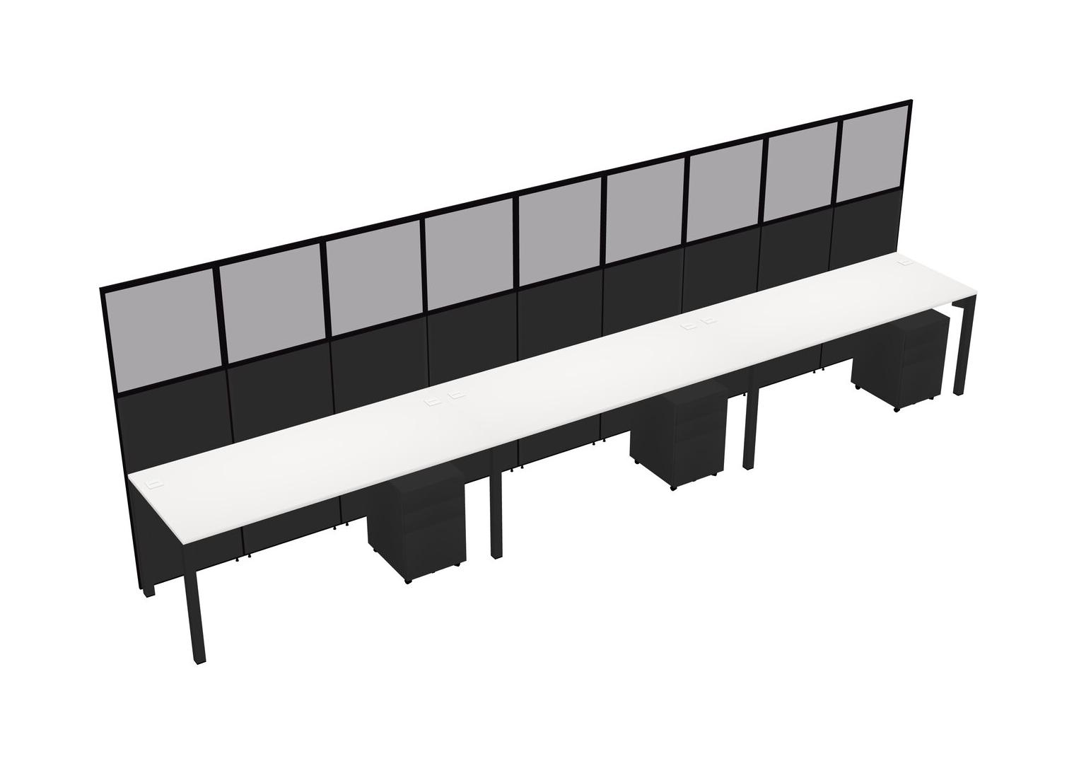 White Shared Rectangular Office Cubicle Panel System With Mobile Drawers For 3 Persons