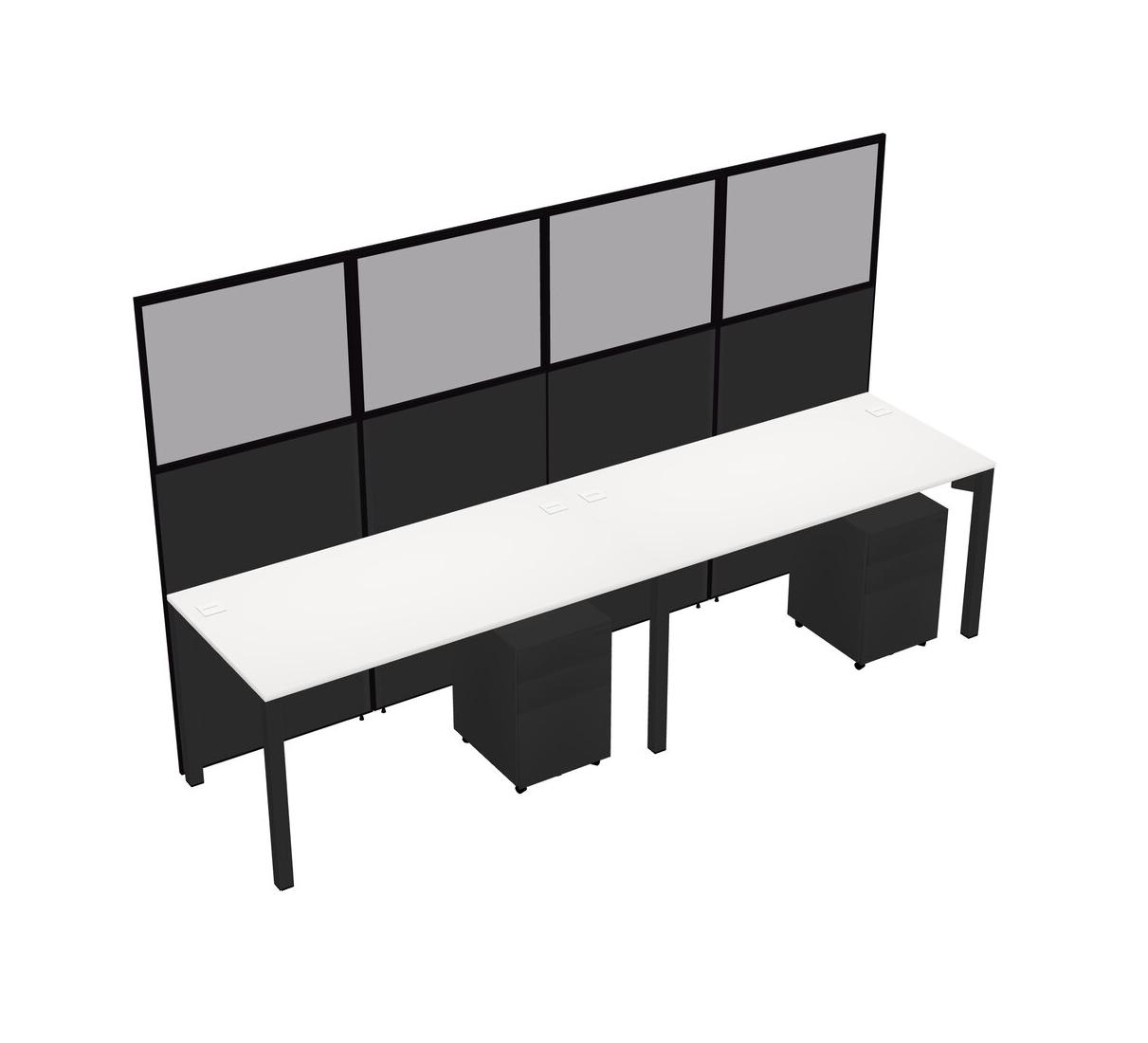 White Shared Rectangular Office Cubicle Panel System With Mobile Drawers For 2 Persons