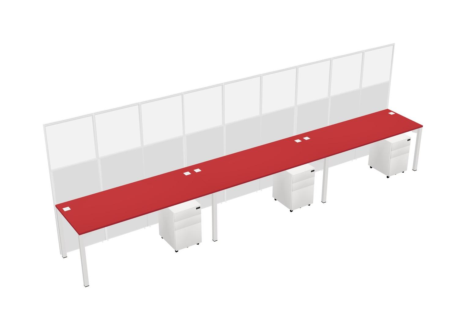 Prism Red Shared Rectangular Office Cubicle Panel System With Mobile Drawers For 3 Persons