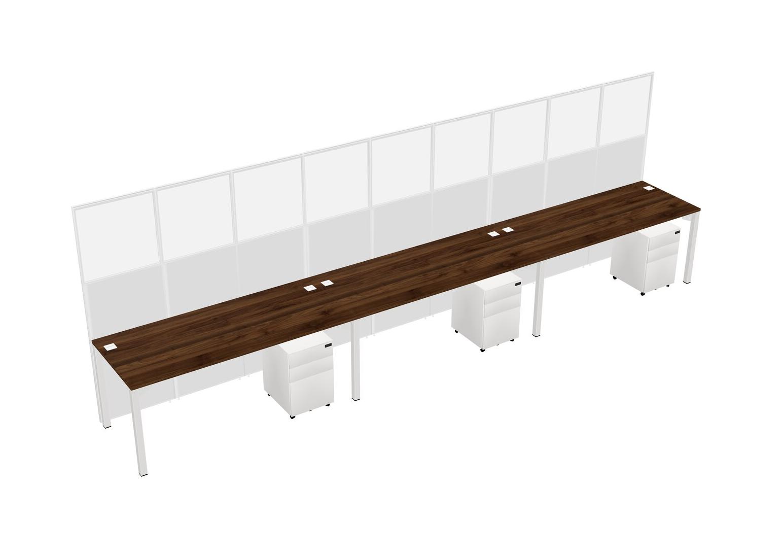 Columbia Walnut Shared Rectangular Office Cubicle Panel System With Mobile Drawers For 3 Persons