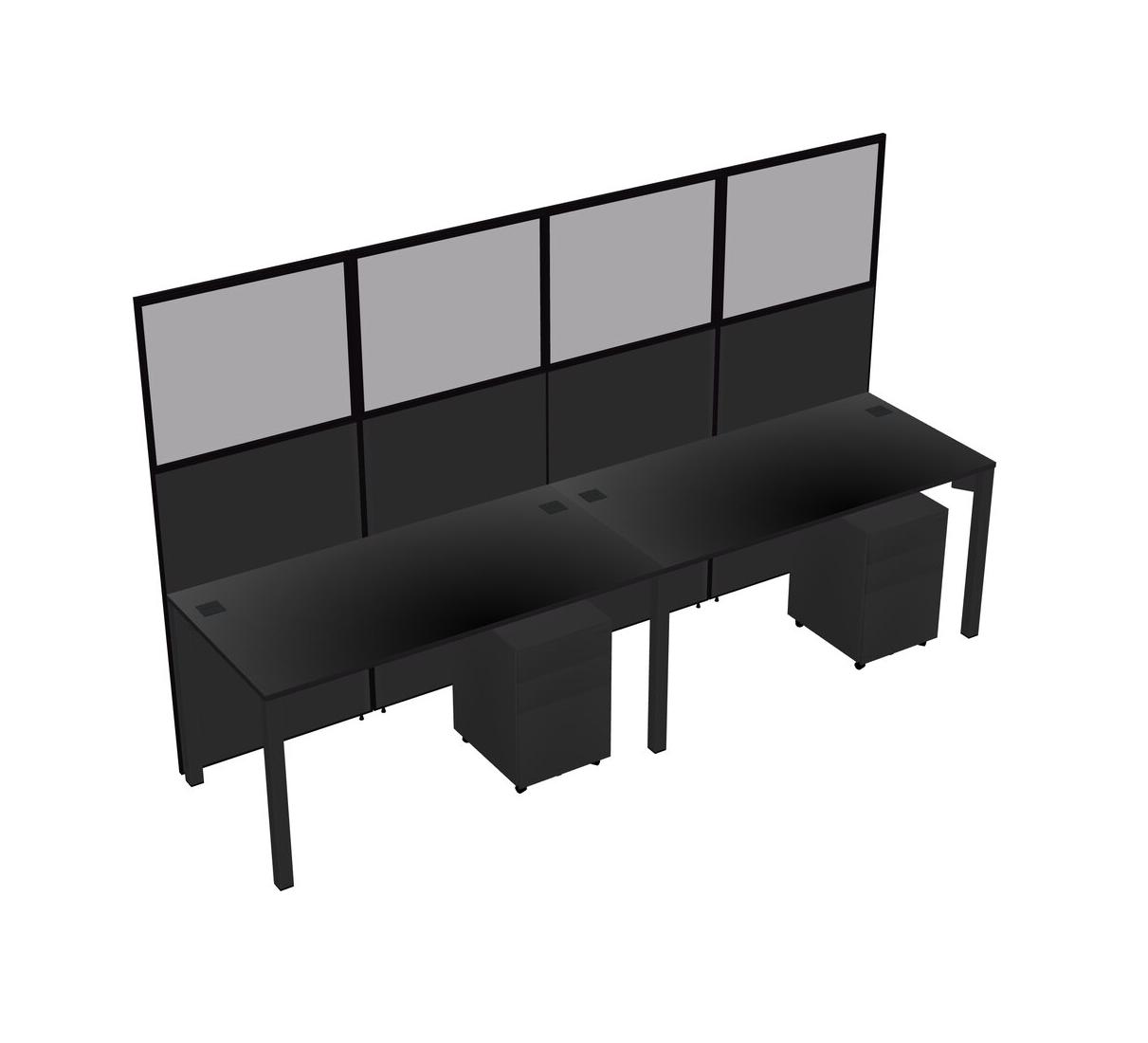 Black Shared Rectangular Office Cubicle Panel System With Mobile Drawers For 2 Persons
