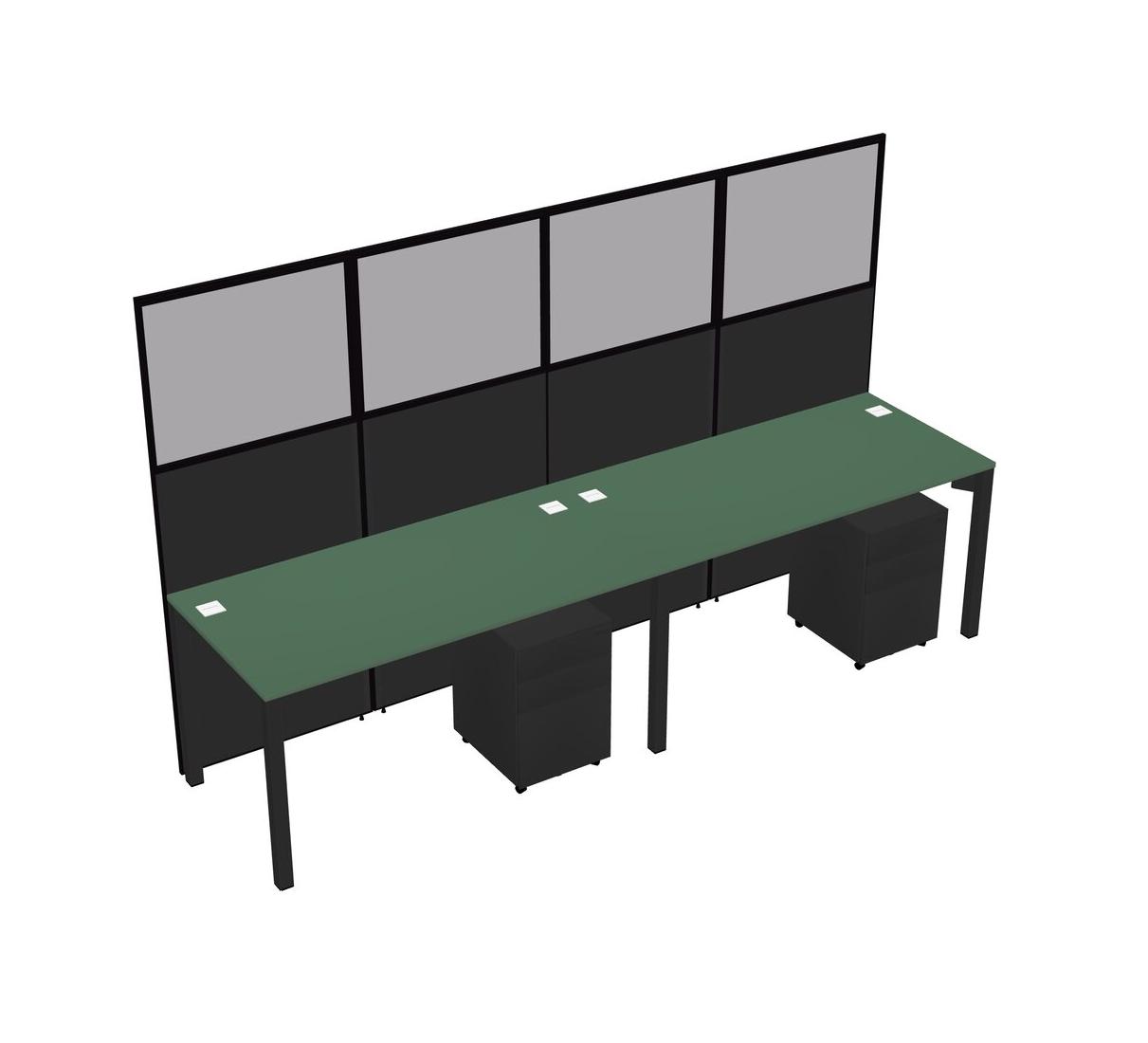 Green Shared Rectangular Office Cubicle Panel System With Mobile Drawers For 2 Persons