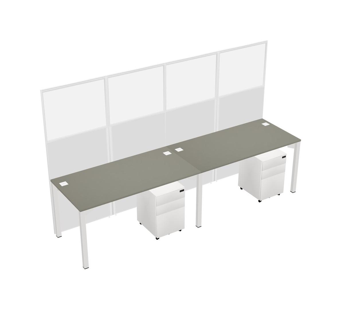 Grey Shadows Shared Rectangular Office Cubicle Panel System With Mobile Drawers For 2 Persons