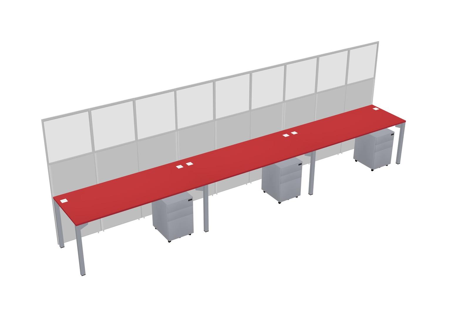 Prism Red Shared Rectangular Office Cubicle Panel System With Mobile Drawers For 3 Persons
