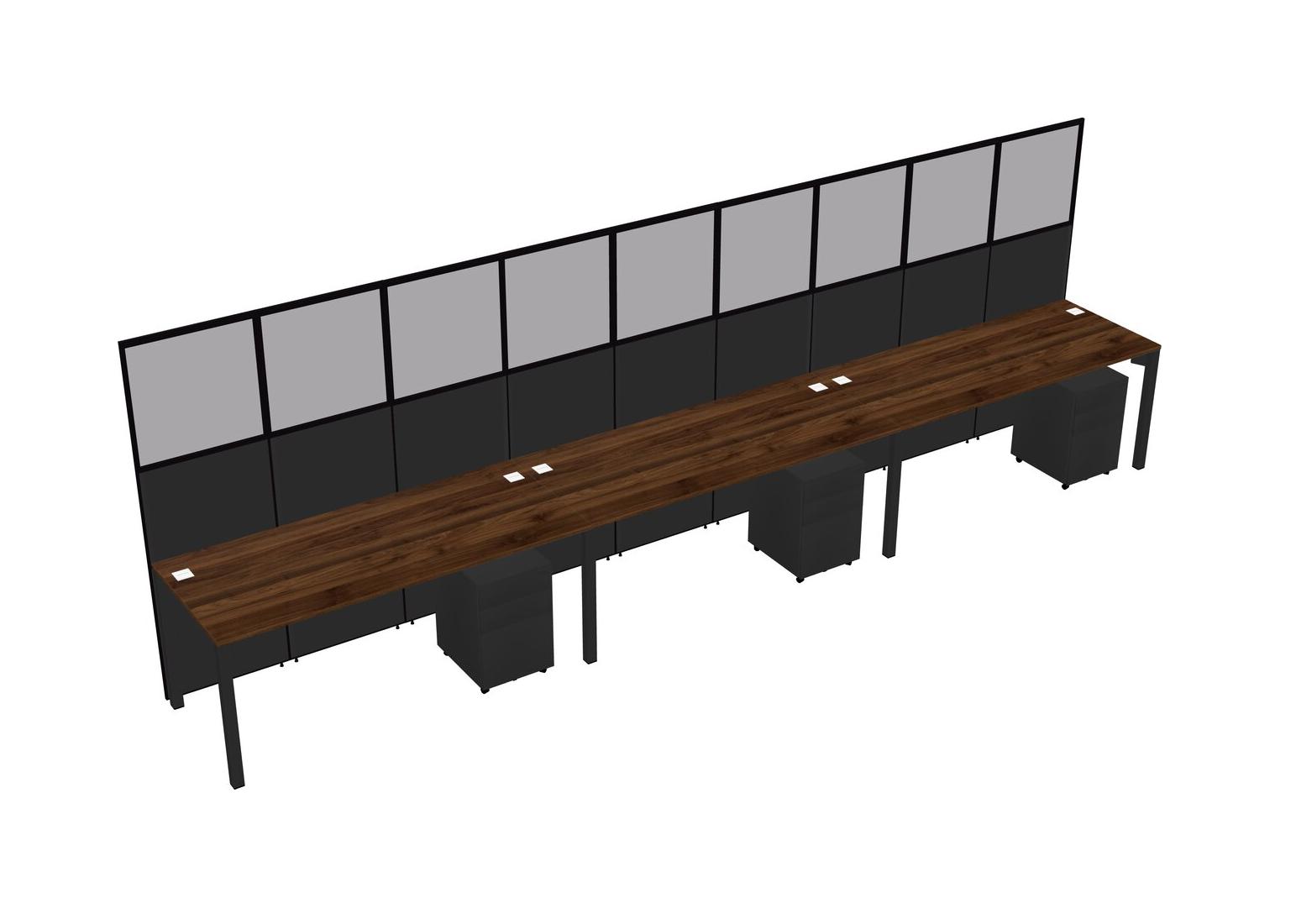 Columbia Walnut Shared Rectangular Office Cubicle Panel System With Mobile Drawers For 3 Persons