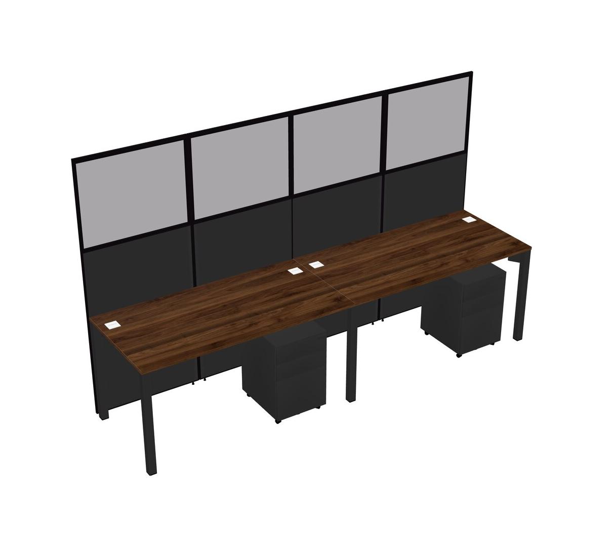 Columbia Walnut Shared Rectangular Office Cubicle Panel System With Mobile Drawers For 2 Persons