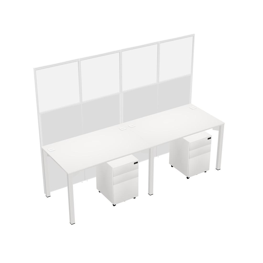 White Shared Rectangular Office Cubicle Panel System With Mobile Drawers For 2 Persons