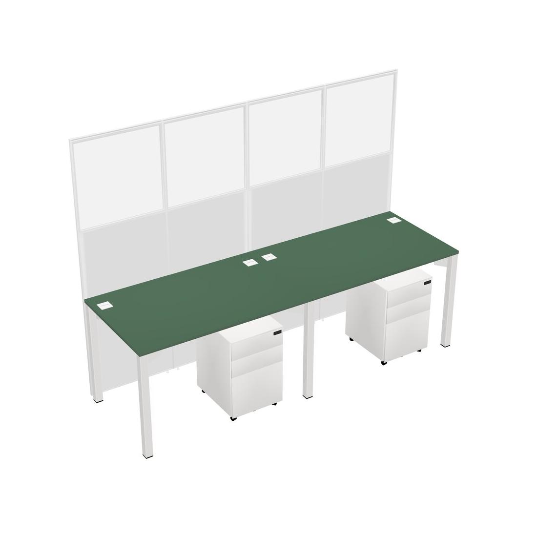 Green Shared Rectangular Office Cubicle Panel System With Mobile Drawers For 2 Persons