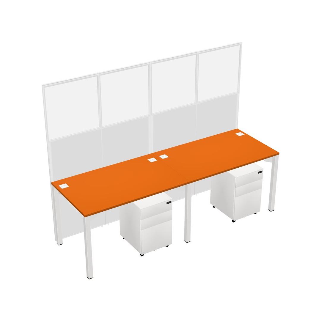 Orange Shared Rectangular Office Cubicle Panel System With Mobile Drawers For 2 Persons