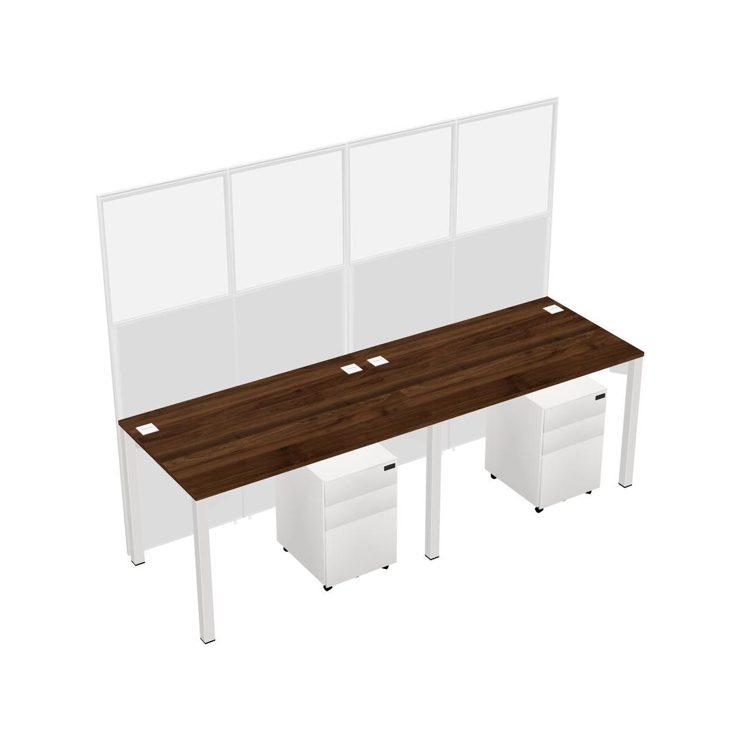Columbia Walnut Shared Rectangular Office Cubicle Panel System With Mobile Drawers For 2 Persons