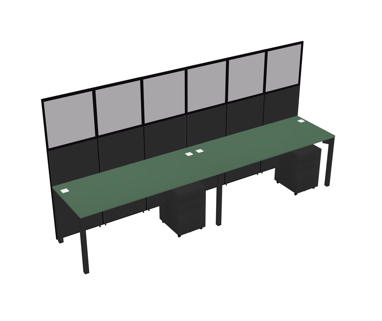 Green Shared Rectangular Office Cubicle Panel System With Mobile Drawers For 2 Persons