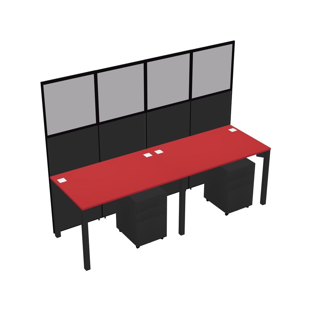 Prism Red Shared Rectangular Office Cubicle Panel System With Mobile Drawers For 2 Persons
