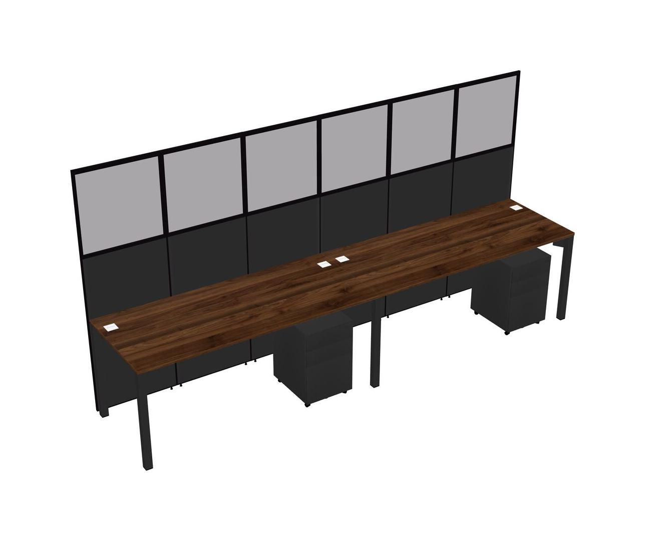 Columbia Walnut Shared Rectangular Office Cubicle Panel System With Mobile Drawers For 2 Persons