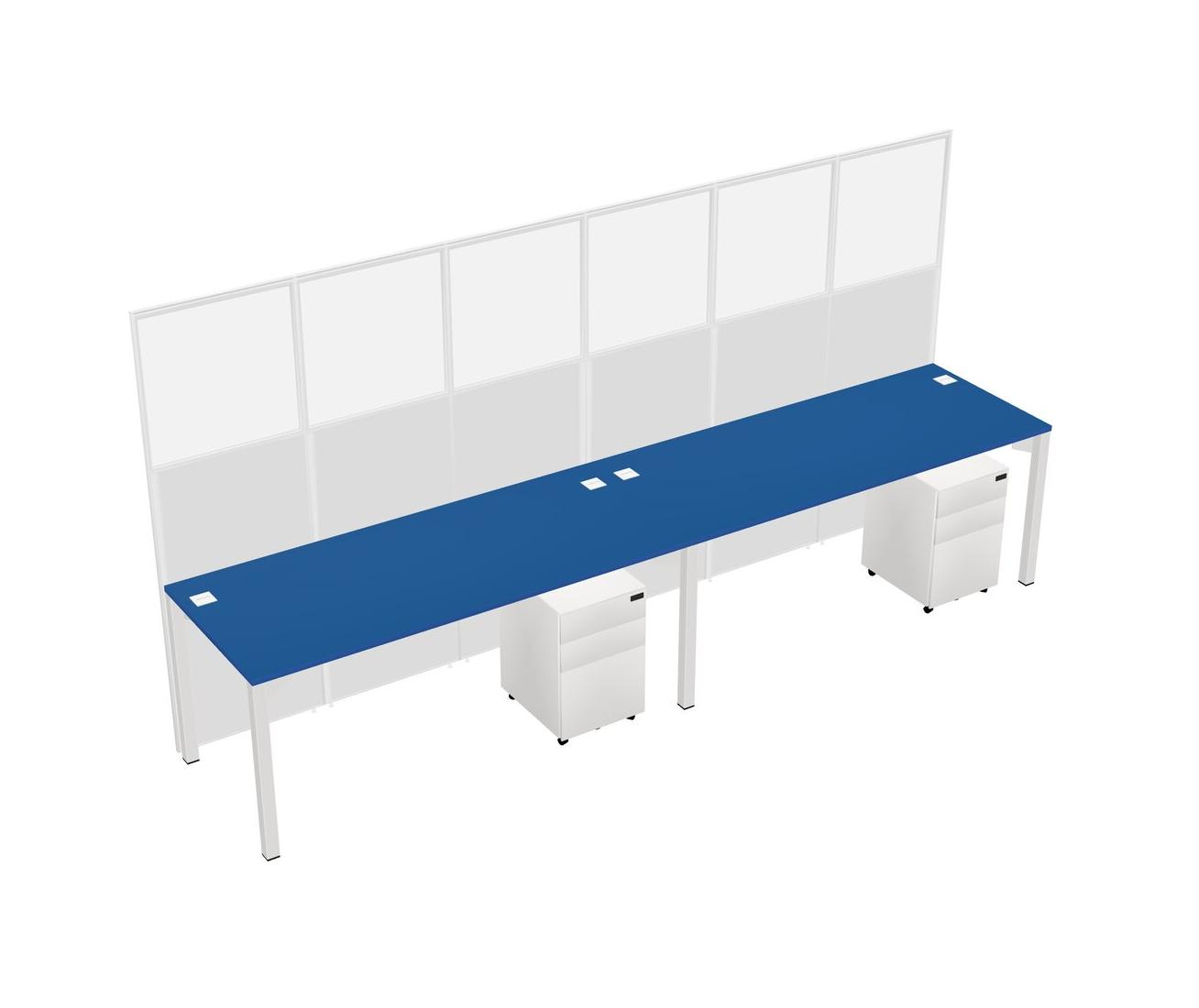 Prism Blue Shared Rectangular Office Cubicle Panel System With Mobile Drawers For 2 Persons