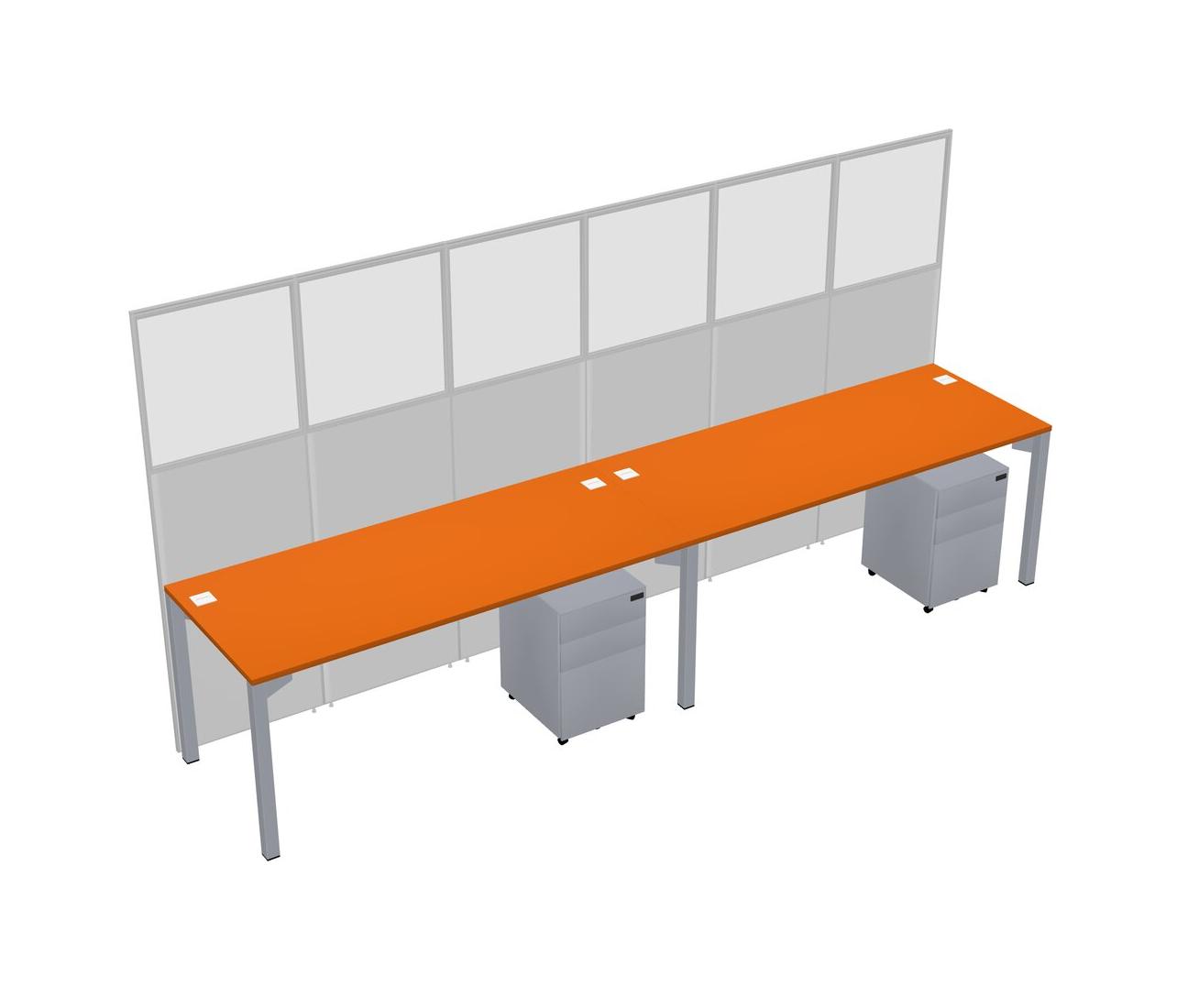 Orange Shared Rectangular Office Cubicle Panel System With Mobile Drawers For 2 Persons