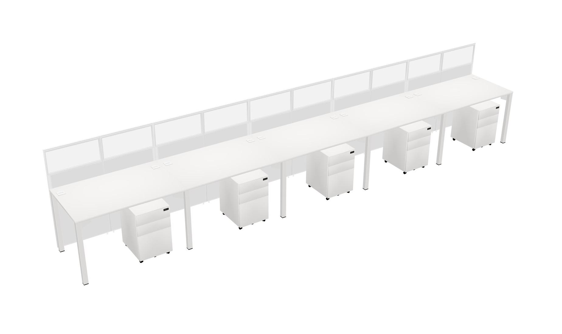 White Shared Rectangular Office Cubicle Panel System With Mobile Drawers For 5 Persons