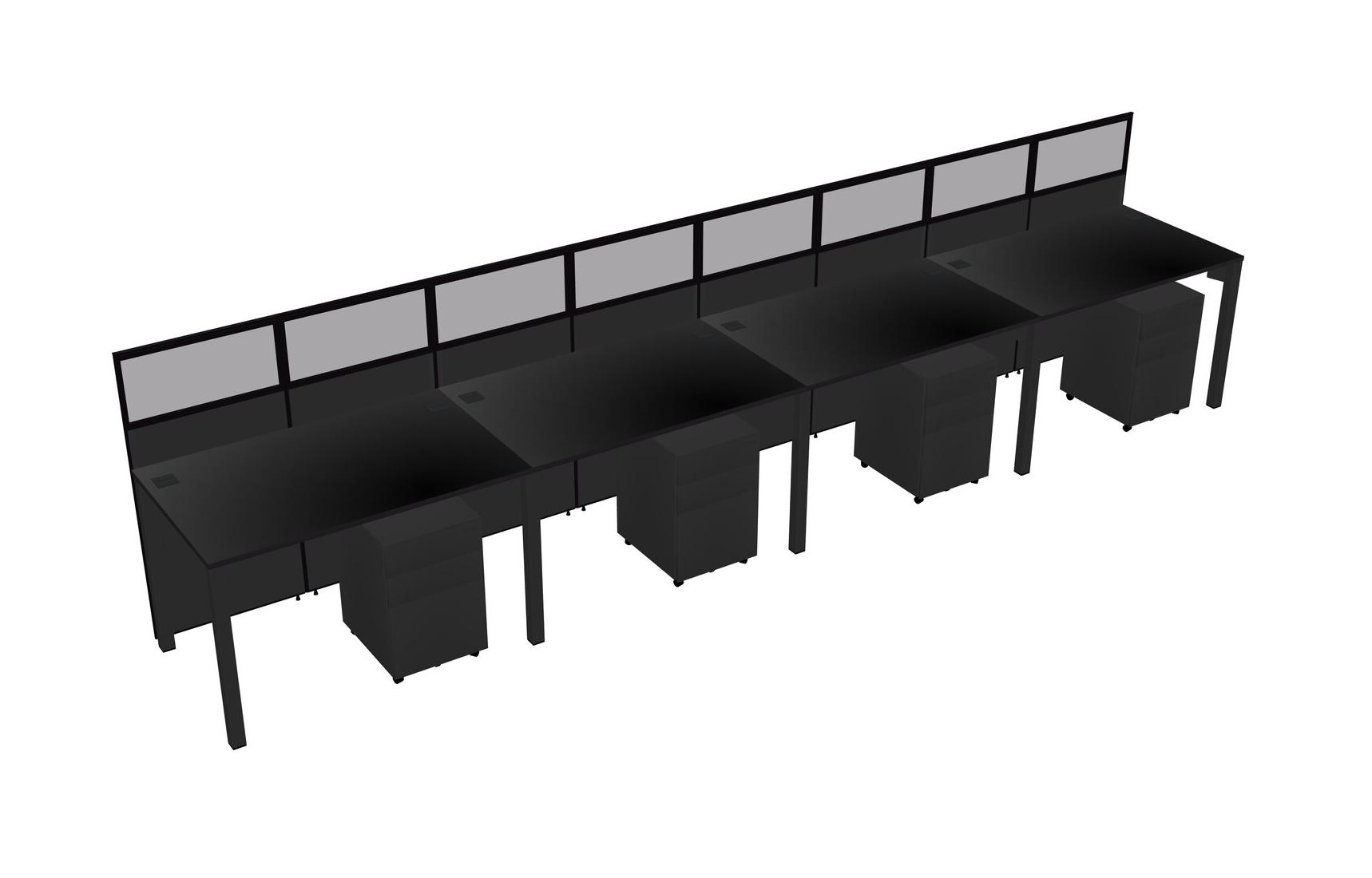 Black Shared Rectangular Office Cubicle Panel System With Mobile Drawers For 4 Persons