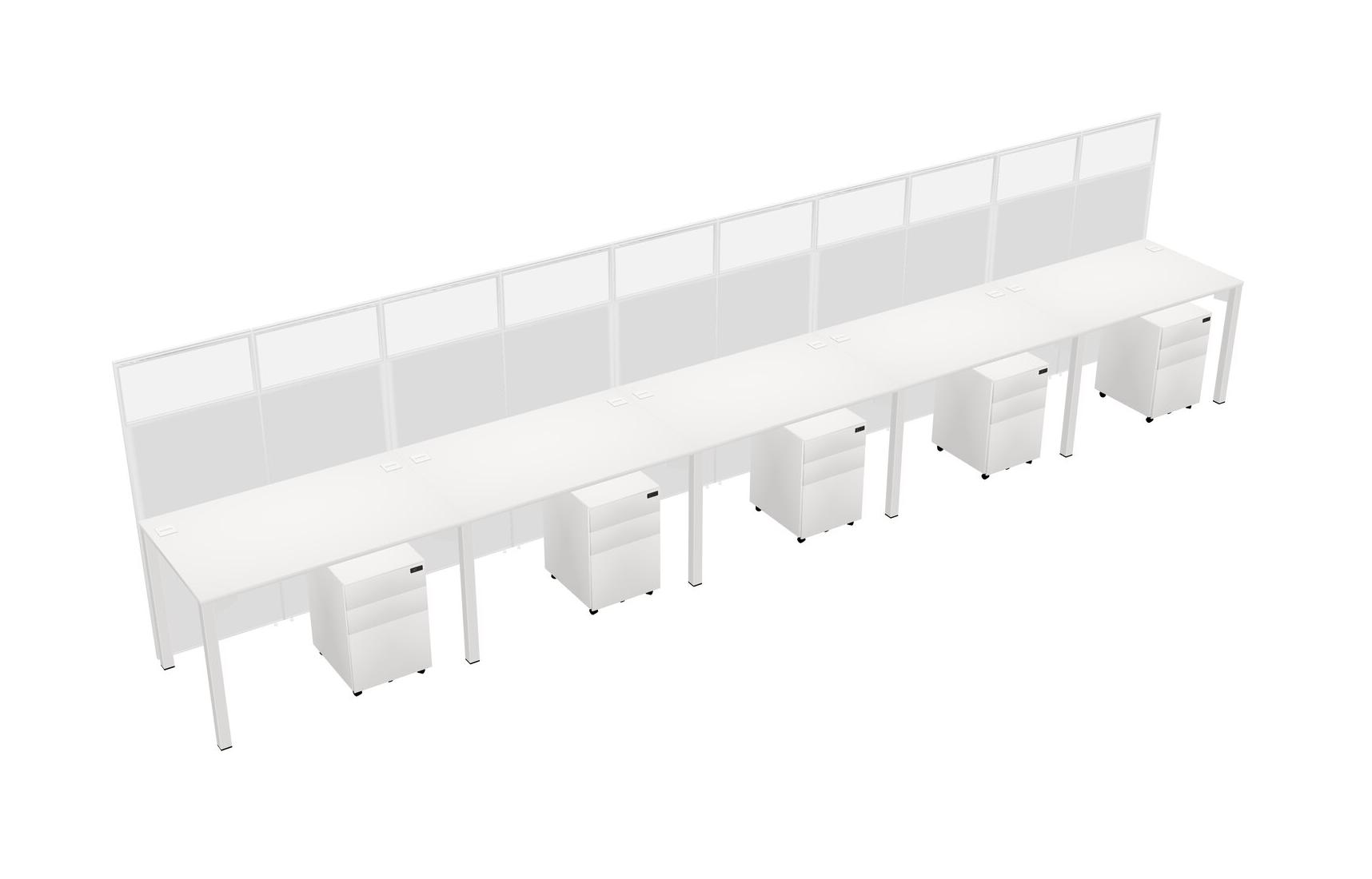 White Shared Rectangular Office Cubicle Panel System With Mobile Drawers For 5 Persons