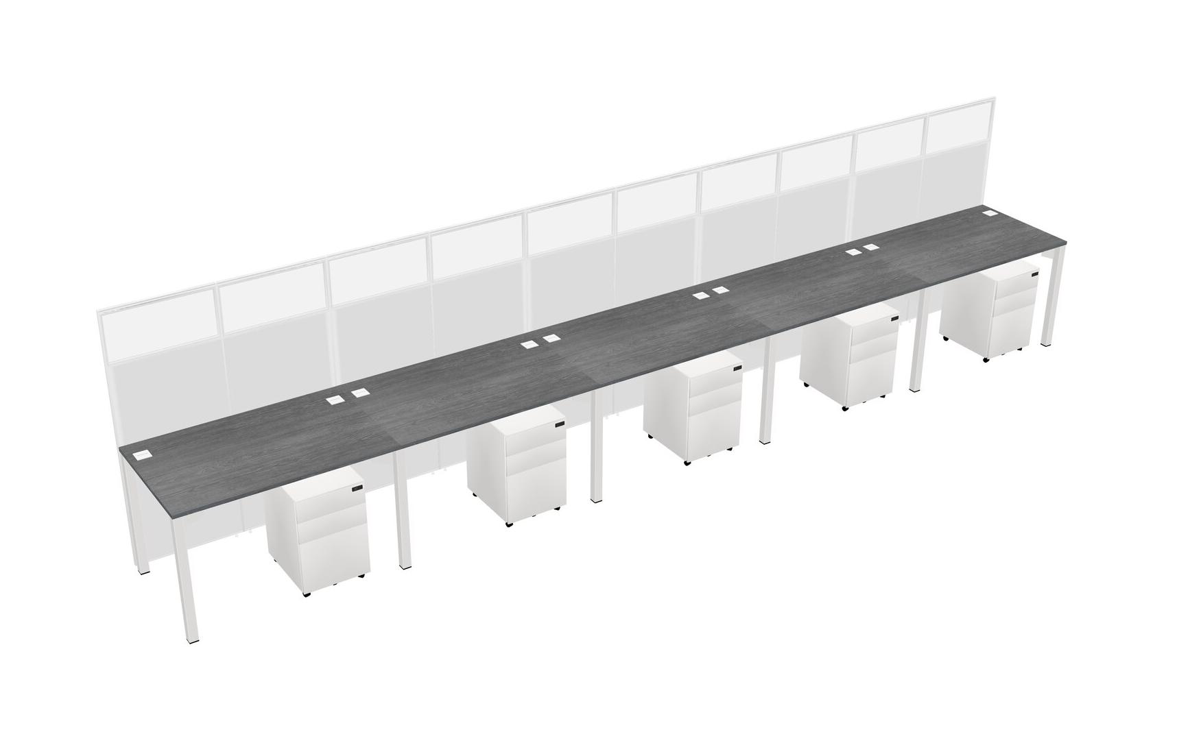 Grey Shared Rectangular Office Cubicle Panel System With Mobile Drawers For 5 Persons