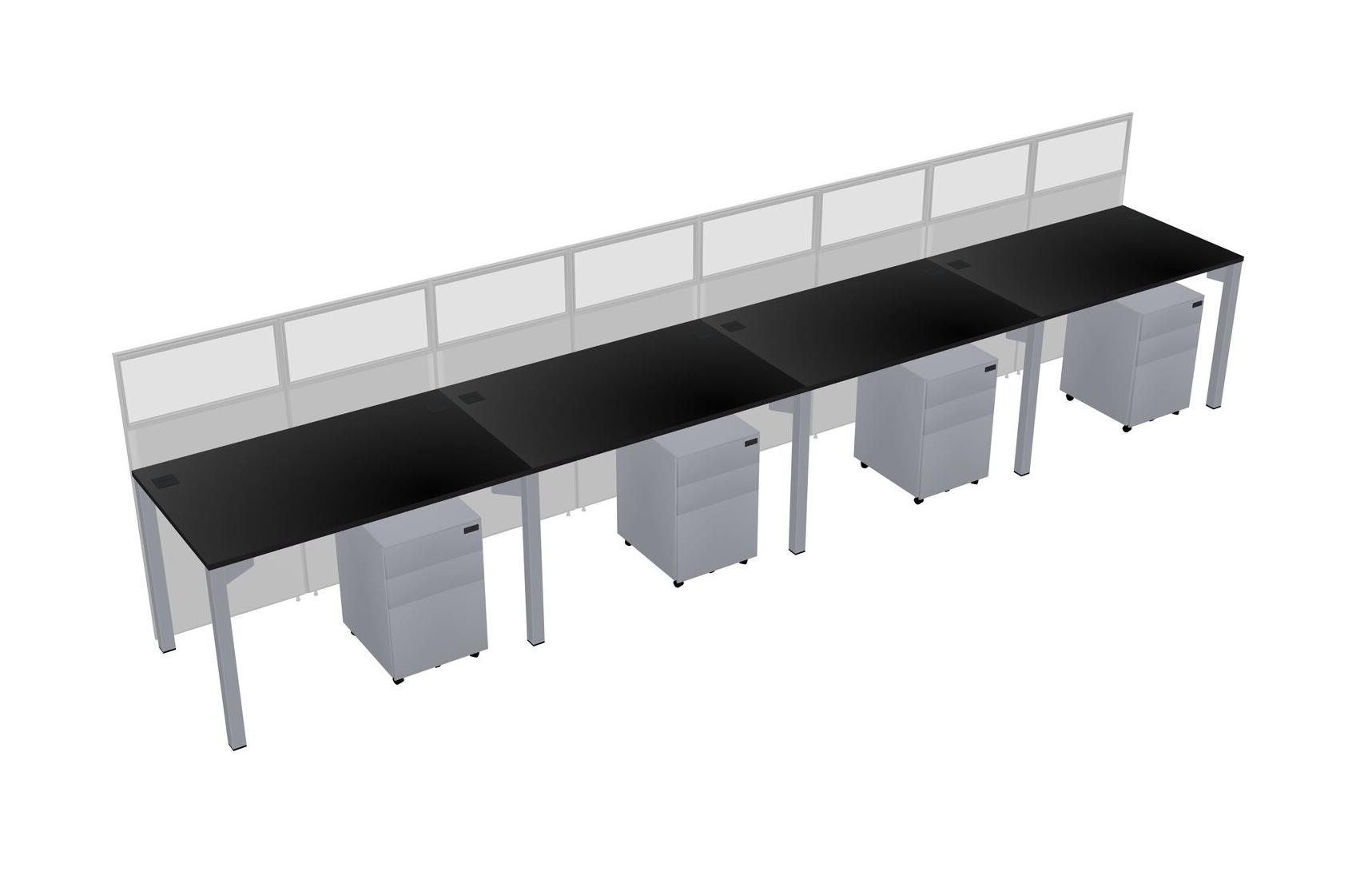 Black Shared Rectangular Office Cubicle Panel System With Mobile Drawers For 4 Persons