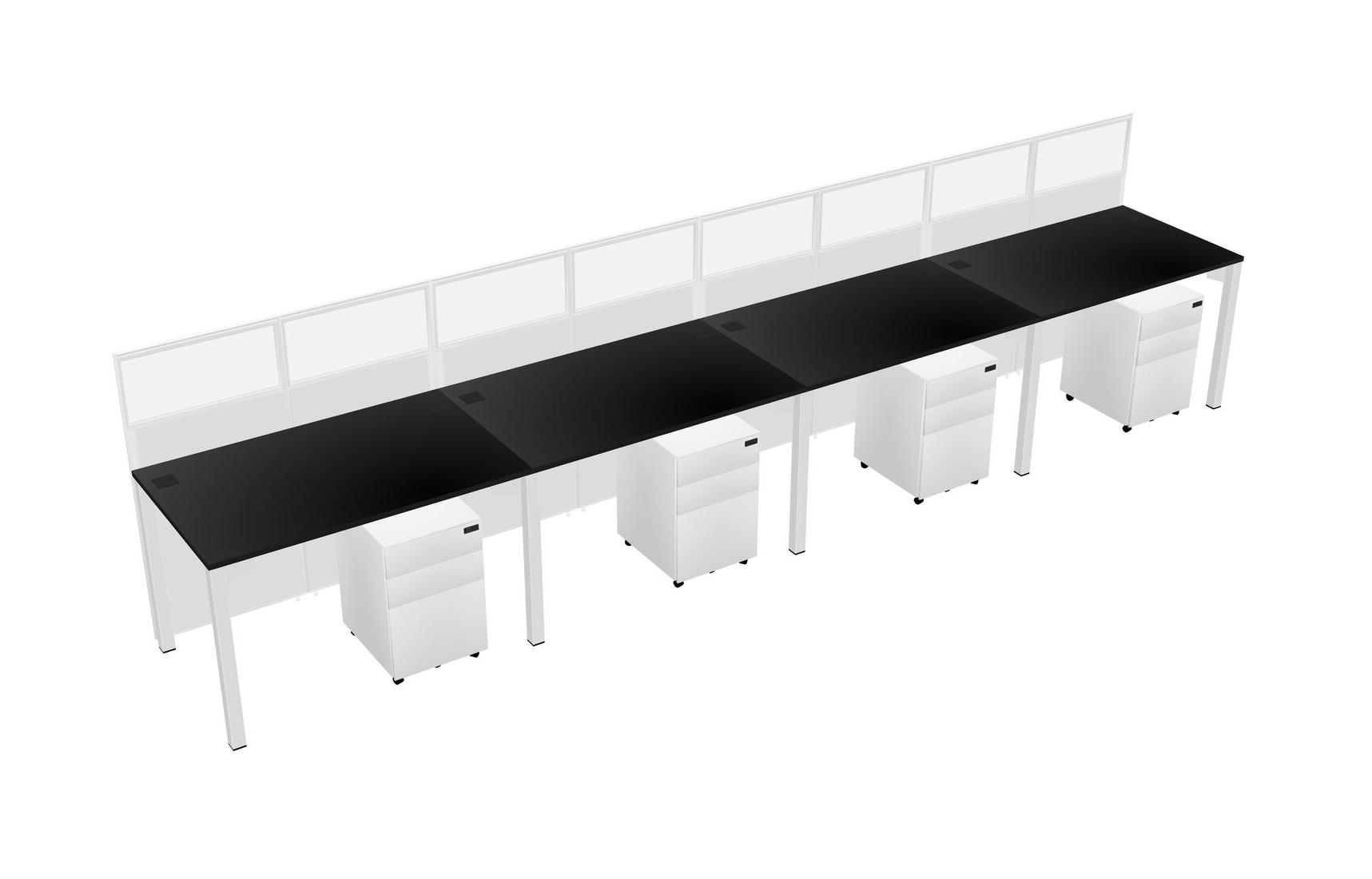 Black Shared Rectangular Office Cubicle Panel System With Mobile Drawers For 4 Persons
