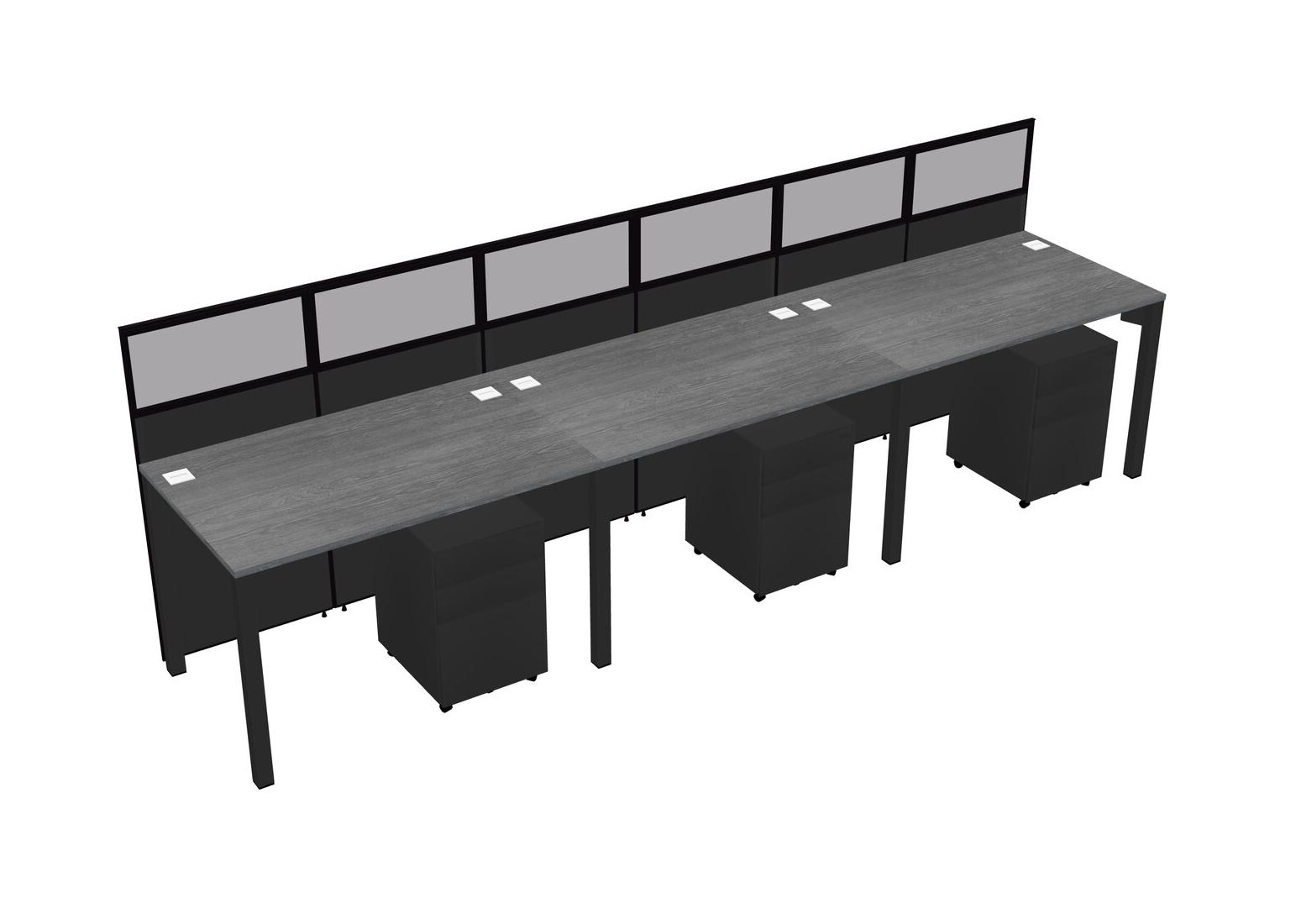 Grey Shared Rectangular Office Cubicle Panel System With Mobile Drawers For 3 Persons