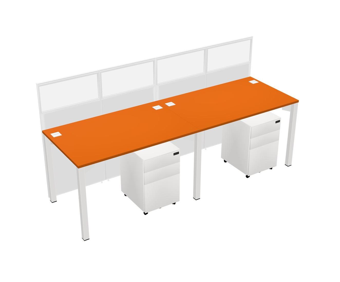 Orange Shared Rectangular Office Cubicle Panel System With Mobile Drawers For 2 Persons