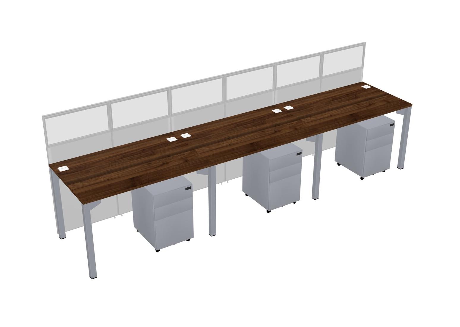 Columbia Walnut Shared Rectangular Office Cubicle Panel System With Mobile Drawers For 3 Persons