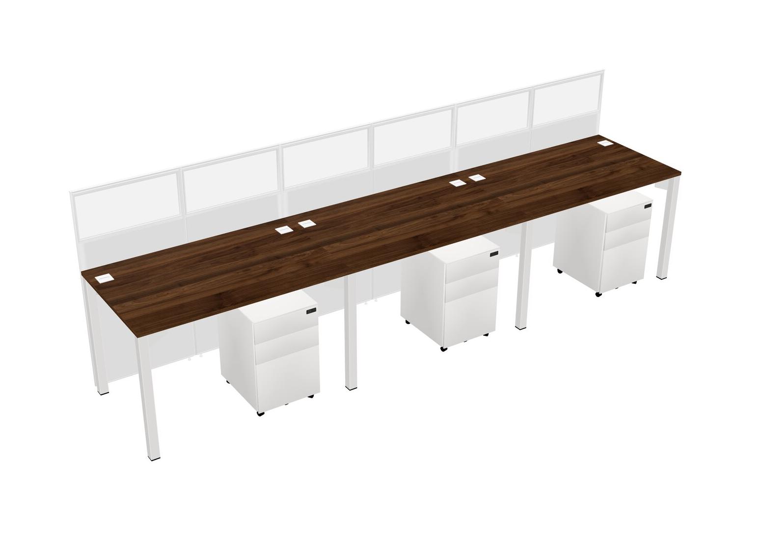 Columbia Walnut Shared Rectangular Office Cubicle Panel System With Mobile Drawers For 3 Persons