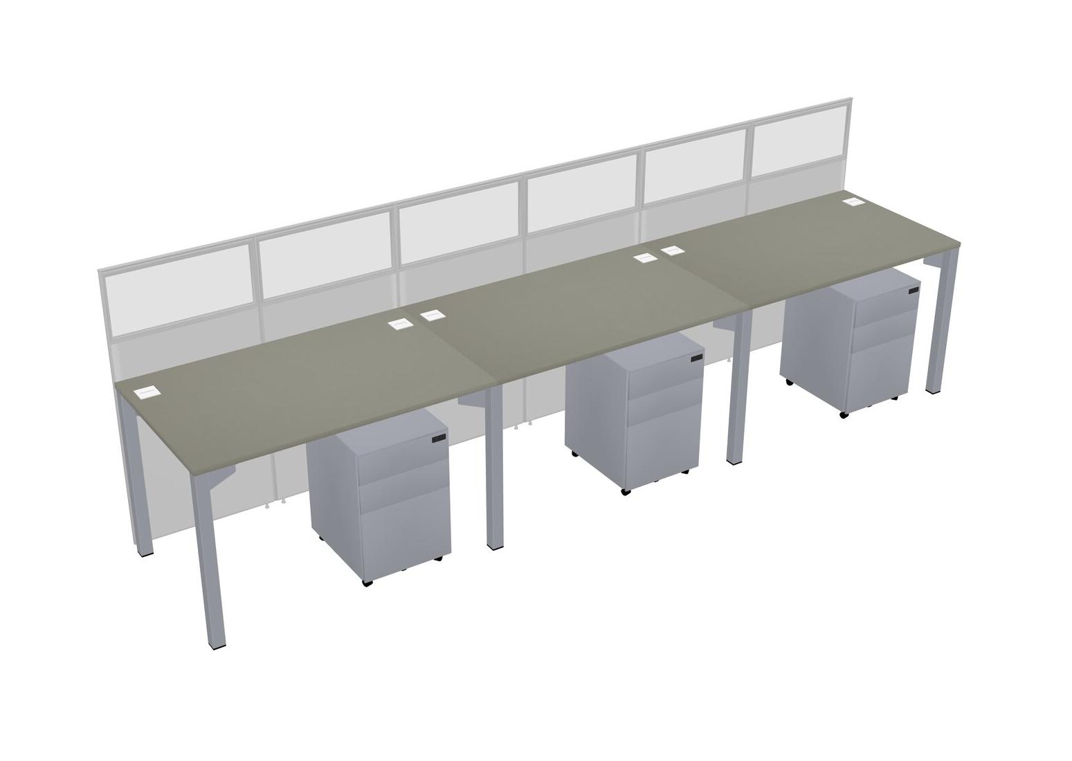 Grey Shadows Shared Rectangular Office Cubicle Panel System With Mobile Drawers For 3 Persons