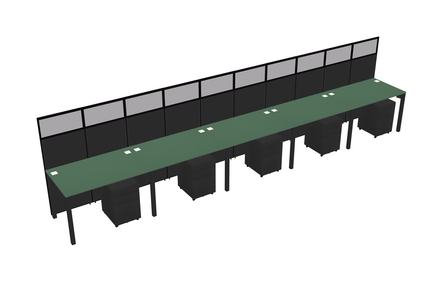Green Shared Rectangular Office Cubicle Panel System With Mobile Drawers For 5 Persons