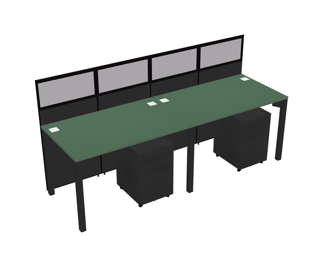 Green Shared Rectangular Office Cubicle Panel System With Mobile Drawers For 2 Persons
