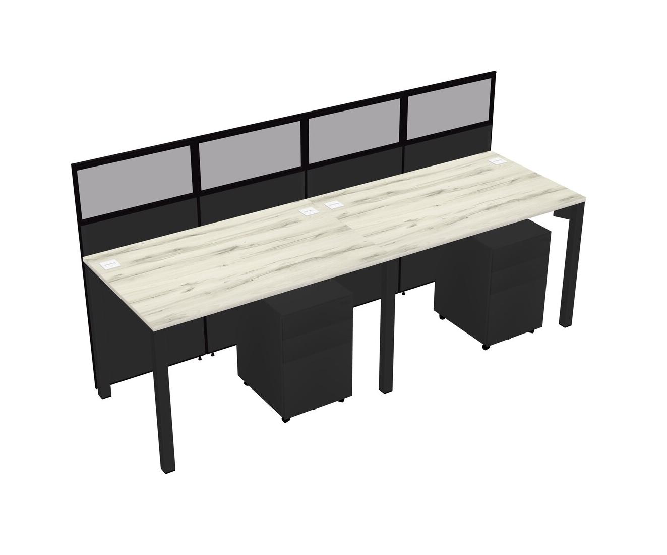 Heinne Holz Shared Rectangular Office Cubicle Panel System With Mobile Drawers For 2 Persons