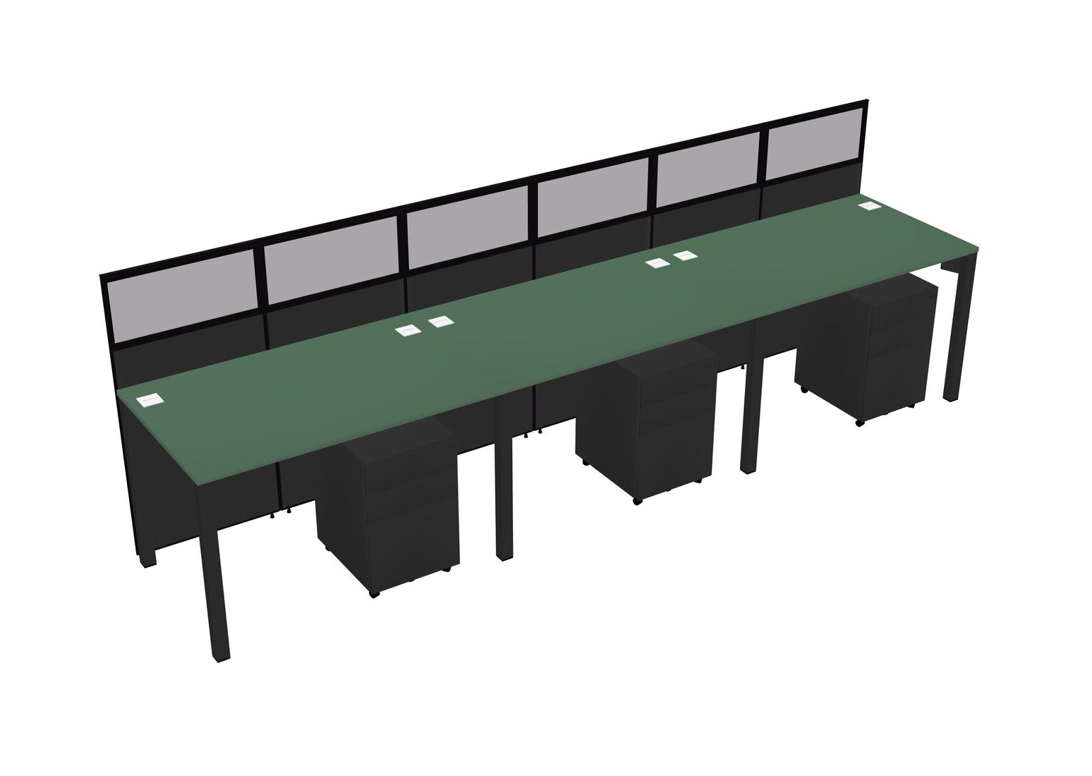 Green Shared Rectangular Office Cubicle Panel System With Mobile Drawers For 3 Persons