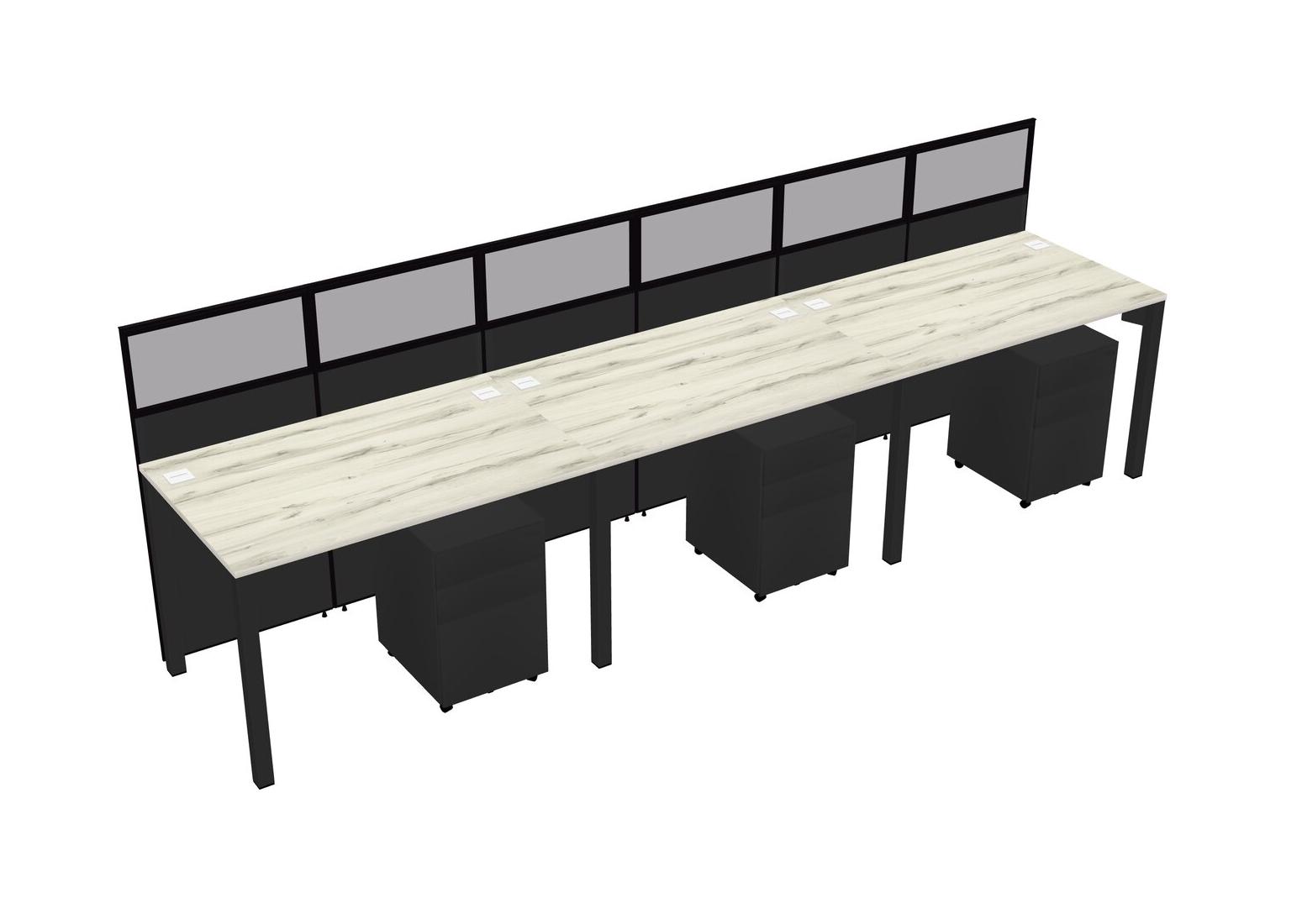 Heinne Holz Shared Rectangular Office Cubicle Panel System With Mobile Drawers For 3 Persons