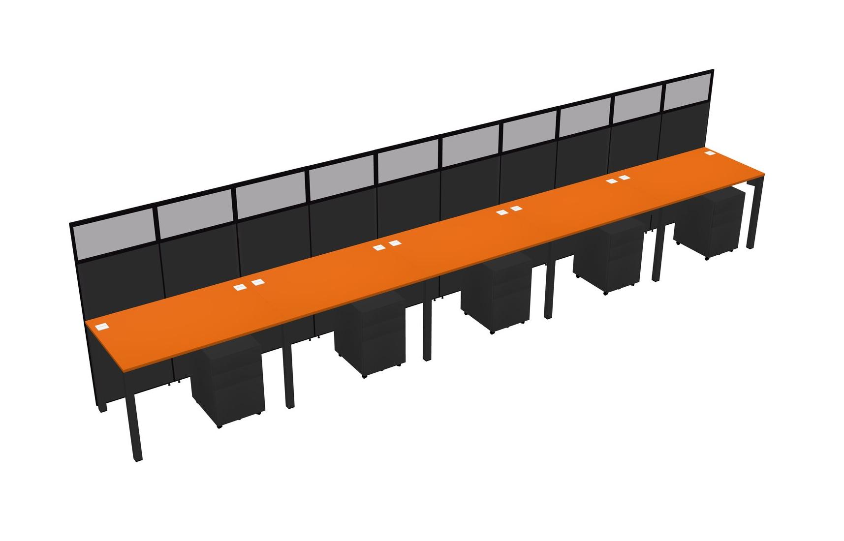 Orange Shared Rectangular Office Cubicle Panel System With Mobile Drawers For 5 Persons