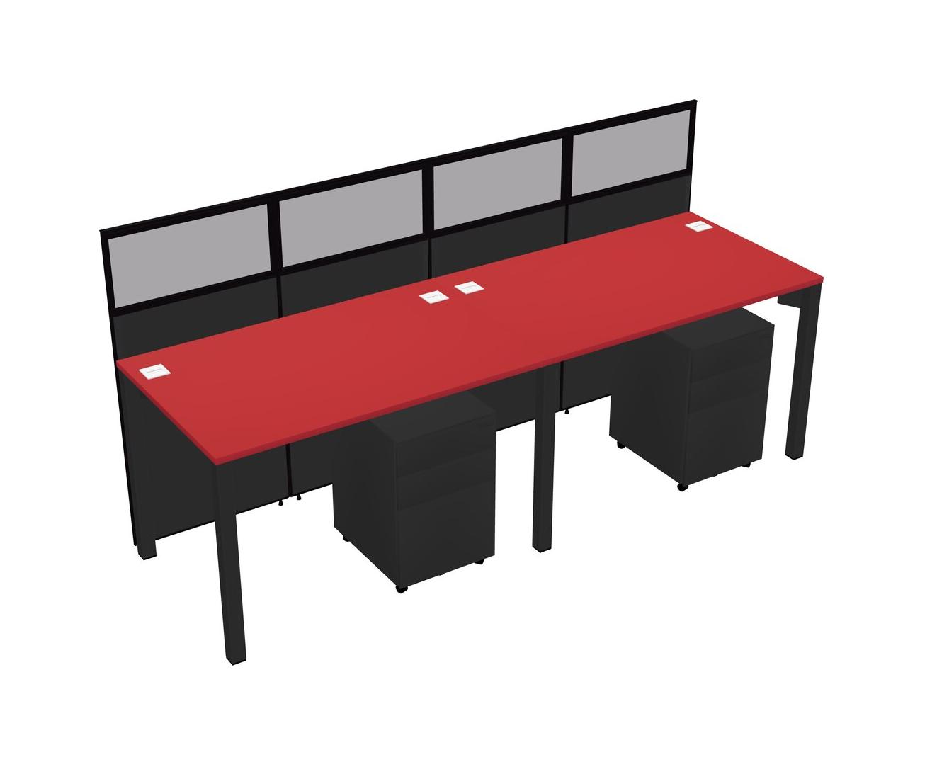 Prism Red Shared Rectangular Office Cubicle Panel System With Mobile Drawers For 2 Persons